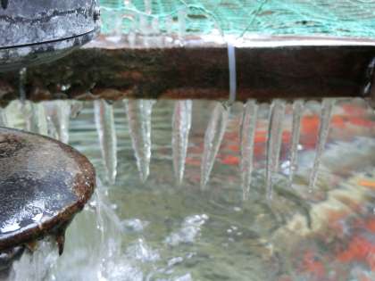 寒い日が続きますが、そのな中、学校の正門近くににある鯉の池に、なんと「つらら」ができていました。つららができるぐらい寒かったようです。暖かくなる日が待ち遠しいですね。