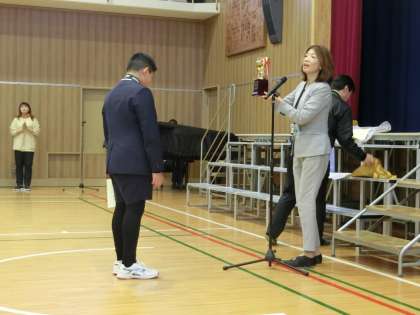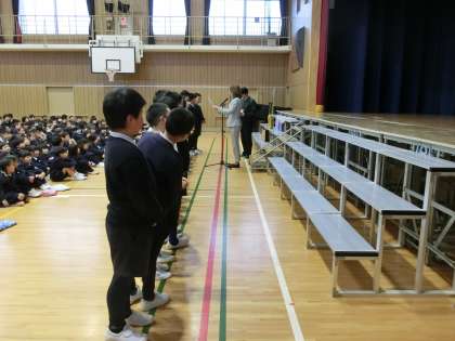 3月3日の全校朝会は、たくさんの表彰の紹介がありました。ソフトボール、読書コンクール、選挙ポスター、格闘技。