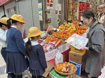 新橋筋商店街のお店の方にインタビューをしたお礼に行きました。お店のPRになるポスターを作り、お渡ししました。早速、店先に飾ってくださるお店もありました。自分たちの街にある新橋筋商店街の皆さんとつながることができました。