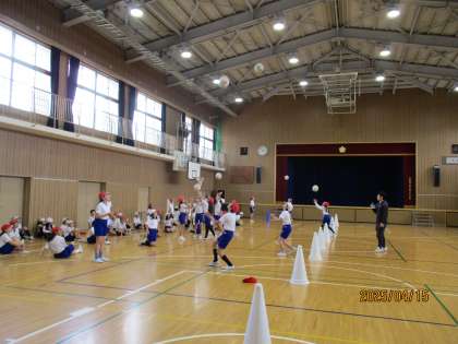 先日、学年でいっしょに体育をしました。いろいろな走り方や、ボールを使った運動をしました。どのようにすれば上手にできるか、体の動かし方を工夫することができていました。
