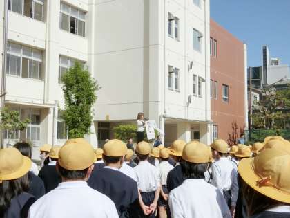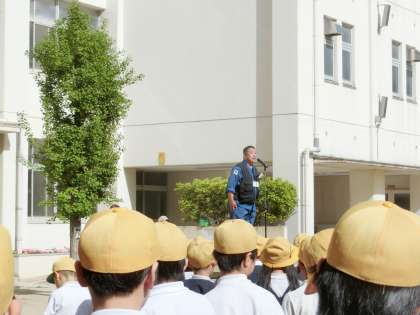 福島区役所から来られたフッピー隊の親川さんのご紹介とご挨拶がありました。児童のみなさんの登下校を見守ってくださります。ありがとうございます。よろしくお願いします。