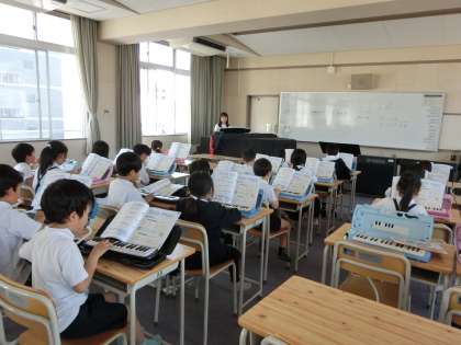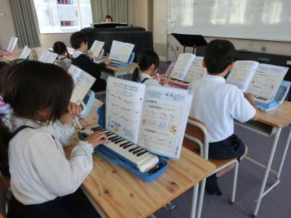 校歌を歌ったり、鍵盤ハーモニカで「カッコウ」を弾いたりしました。