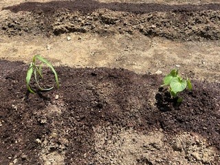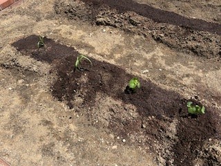 ひまわりの6年生が草むしりをしてくれ、学習園が復活しました。その学習園になすび、とうもろこし、オクラ、ピーマンの苗を植えました。学年ごとに分担をして、水やりをしてもらいます!収穫がとってもたのしみです。