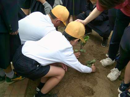先週の金曜日の5時間目に食育授業がありました。昨年度はピーマンを育てた子どもたち。今年は「なす」を植えるというと「なす、ちょっと苦手なんだよなぁ」という声が意外と多く驚きました。今回の学習を通して、なすを少しでも好きになれるといいですね。一カ月ほどでなすができるみたいなので、しっかり水をあげてたくさん収穫したいです。