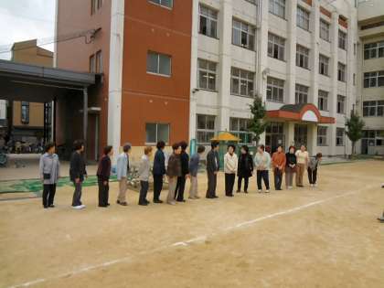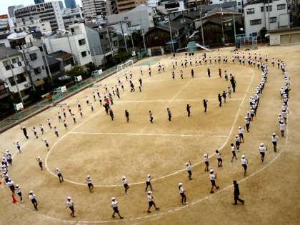 10月18日(金)前日に引き続き、地域の女性会の方々に福島区民音頭を教えてくださいました。木曜日は講堂で5年生が教えていただきましたが、今回は、5・6年生合同で本番通り運動場で教えていただきました。