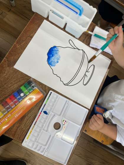 好きな味の色の絵の具をパレットに乗せ、お水で調整しながら色付けしていきました。
