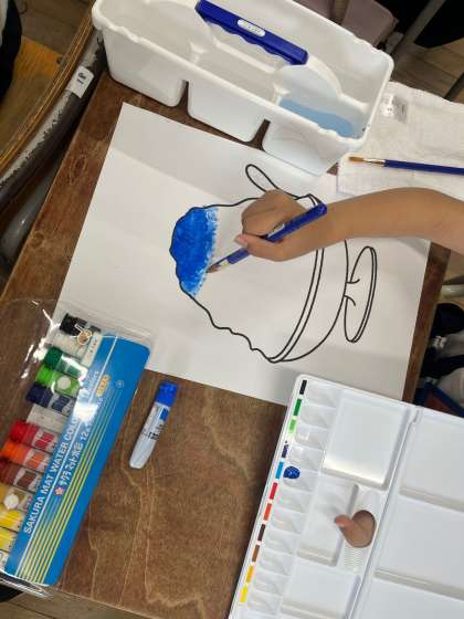 はじめて絵の具セットを使いました。かき氷のシロップを塗りました。