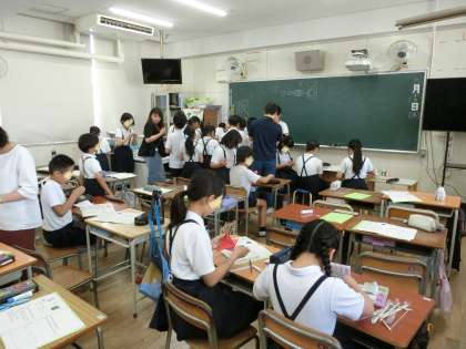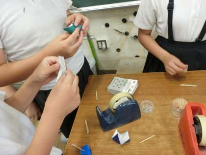 つまようじを束ねて、それぞれの先端にマグネットと羽をつけます。