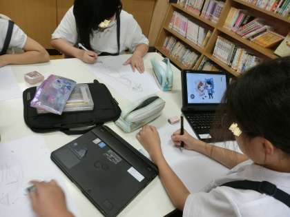 図書室にある本を見ながら描いたり、パソコンで描きたいキャラクターを探したりしました。