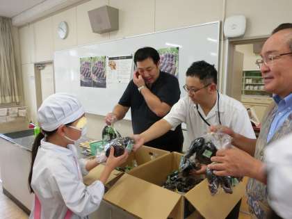 授業の最後に、一人一袋のなすびとレシピのおみやげをいただきました。