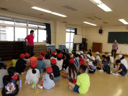 時刻までに、全員集合し、話を聞いた後、軽い運動をしました。