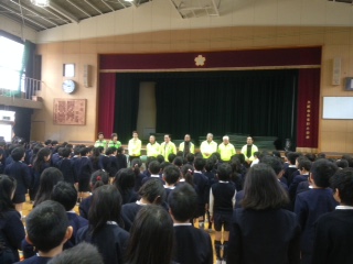 2月29日、講堂で子ども見守り隊の皆様に感謝する集会が行われました。流れは以下の通りです。