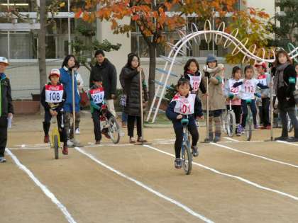 日本一輪車協会の検定会が本校で12月1日の日曜日にありました。近畿一円からお友だちが集合していました。中には、くるくると回る技を披露していた人もあり、技の奥深さに驚かされました。