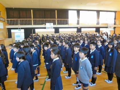 本日(1月7日)第3学期始業式が午前8時50分からありました。10分前の8時40分に、講堂に静かに入室した学級を見ていると、「ウムウム!これは、今学期も楽しみ」と思っていました。しかし、後から後から入ってくる子どもたちは、2学期終業式に比べ、話し声も聞こえ、ザワザワした雰囲気で残念でした。でもでもでも、そのことを指摘すると、シーンとなり、普段の吉野小学校の朝会にもどり、いいスタートがきれました。