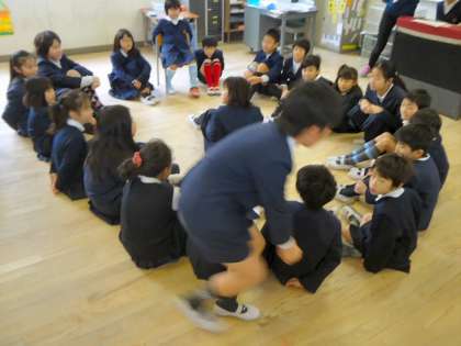 3学期になってはじめてのたんぽぽ活動でした。今回は、教室に取材に行きました。ある学級ではオセロゲームを、ある学級ではハンカチ落としを、また、ある学級ではお手玉をというように多様なお楽しみ活動を学年を越えて取り組んでいました。