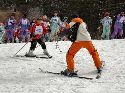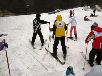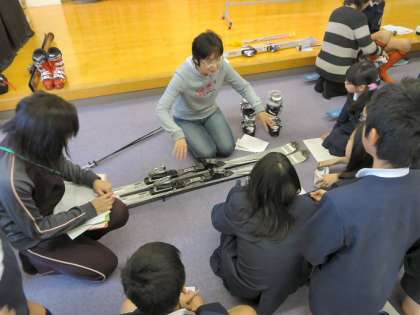 本日は、6年生の卒業遠足で六甲山スノーパークにスキーに行ってきました。地域の方々に事前にお出でいただき、スキーブーツのはき方やスキーの持ち方などを教えていただきました。また、今日は、9名のボランティアの方々に指導にきていただきました。子どもたちは、初めは、「こんなん、いやや」と言っていた子が、最後には「結構うまいでしょ」という顔をどの子も滑っていました。