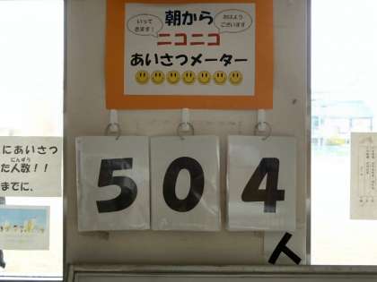 2月10日の朝会で代表委員の人たちがあいさつ週間のまとめをしてくれました。前回お伝えしましたように、2学期は、442名のお友だちが元気にあいさつしてくれました。さて、3学期のあいさつ週間では、なんと写真のように504名のお友だちが元気にあいさつができました。前回より増えて子どもたちは素直に喜んでいました。