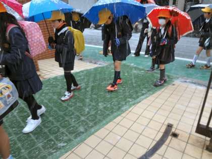 本日は、朝から雪模様。登校時間になると、道路が雪で滑るような状況。管理作業員さんが、滑らないようにグリーンマットを敷いて子どもたちの安全を高めてくれました。下校も無事してくれるように相談しました。