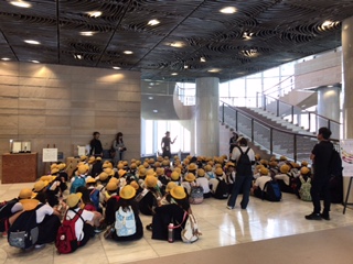 博物館に到着しました。説明を受け、今からグループで館内を回ります。