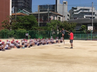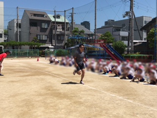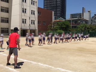 福島区役所ゲストティーチャー派遣事業でトップアスリート荒木大輔 氏および谷川洋也 氏が本校へお越しになりました。速く走るために大切な体の動きを丁寧にご指導いただき、子どもたちの走り方がみるみるレベルアップしました。