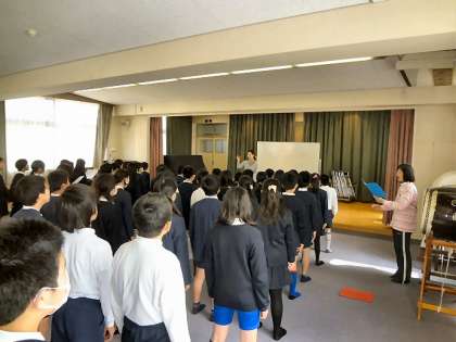 本日は、野田中学校から音楽担当の先生がお出でになり、6年生の合唱指導をしてくださいました。6年生は、今少しずつ卒業式の練習を始めています。特に、卒業式の時に歌う歌の指導を専門的にみてくださったらありがたいという希望を叶えてくださり、今回実施の運びになりました。
