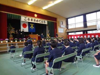 式中の門出のことばでは、涙ぐむ卒業生、ご来賓、保護者の方々がおられ、感激あふれる卒業式でした。式後は、ご来賓が口々に、『本当に心のこもった卒業式でしたね。』とおっしゃってくださいました。皆様本当にありがとうございました。
