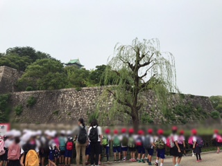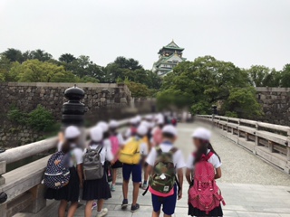 大阪城公園に着き、散策しました。川のようなお堀や大きな大阪城を見ました。
