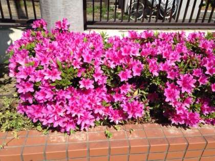 校庭ではひらどつつじが美しく咲いています。
