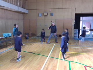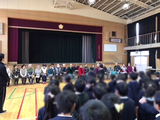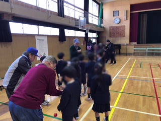 地域の老人会の方々に来ていただき、1年生が昔遊び体験をしました。