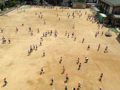 午前中の休み時間は、ほとんどの子どもが運動場に出ています。