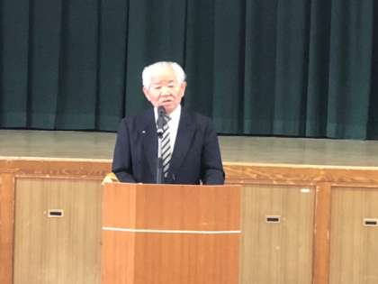そこで今日の朝会では、講師として、同窓会会長の邊見榮生さんにお越しいただき、お話を聞きました。