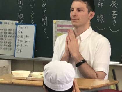 今日はオーエン先生が、6年1組で、ランチタイムです。