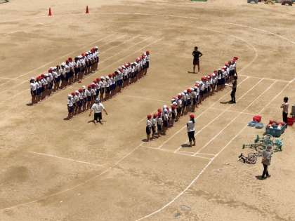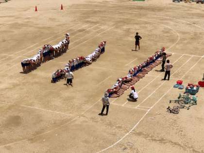 運動場では、5・6年生がウェーブの練習をしていました。とってもきれいです。
