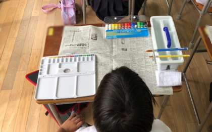 2年生が、初めて絵の具を使っての学習に挑戦します。
