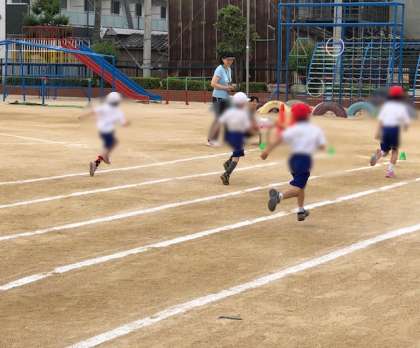 今日は予定通り全校で体力テストを実施しています。1年生も50メートルを一生懸命に走りました。