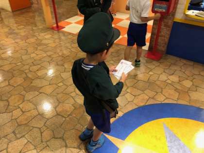 郵便局員さんになってハガキの配達をして遊びました。