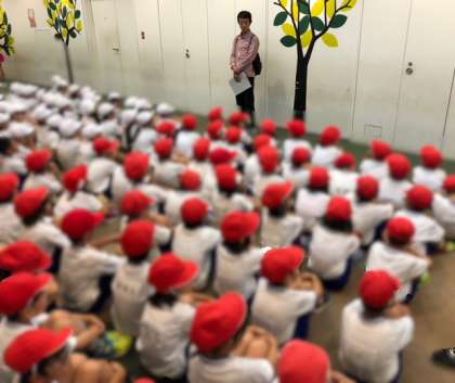 キッズプラザの遊びは終了しました。暑いので、キッズプラザの中でお弁当を食べます。