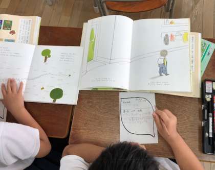 2年生の国語科では、自分が好きな本の紹介をしました。本の紹介カードを書いて友だちと紹介しあいました。夏休みに読んでみるといいね!