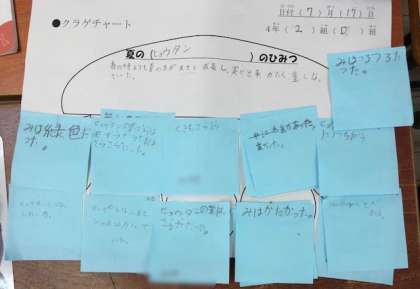 夏の生物について調べたことを、タブレットや思考ツールを使ってまとめました。