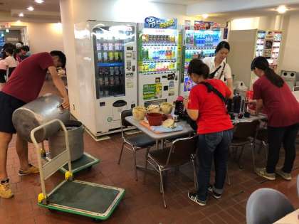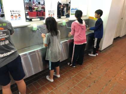 子どもたちが、食事の用意をしている時に、キャンプリーダーさんや看護師さん水筒にお茶を入れてくれます。