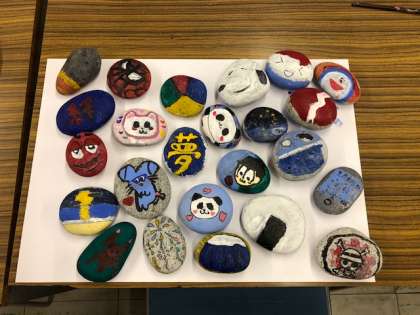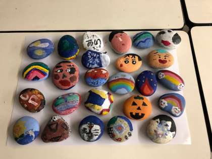 それぞれのクラスで素敵な石ころアートができました。