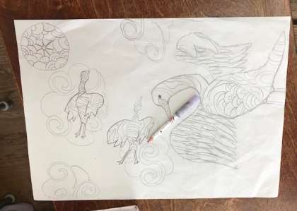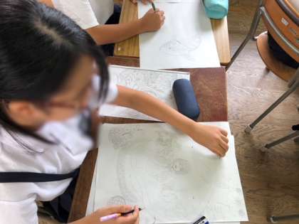 6年生が作品展に向けて下絵を描いていました。素晴らしい作品ができそうです。ワクワク!
