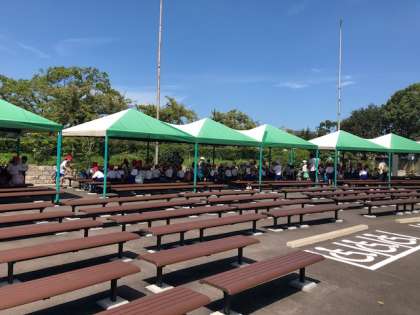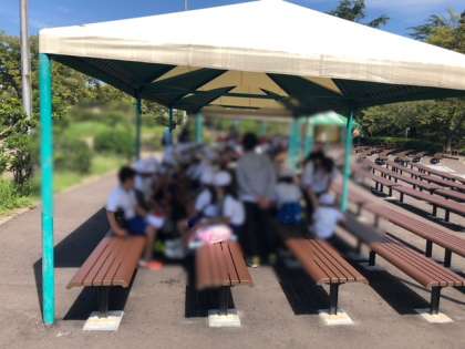 テントの下で
