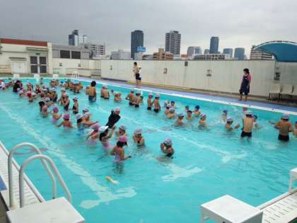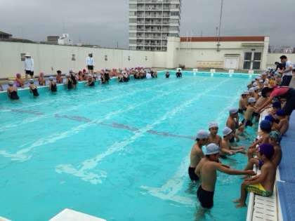 7月7日(月)10:30〜11:35西野田幼稚園との幼小プール交流会を行いました。曇り空で少し寒い一日ですが、園児も児童も一緒に十分楽しむことができました。