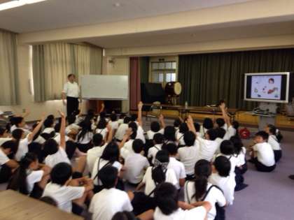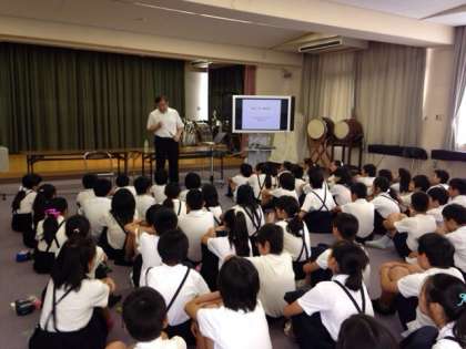 7月9日(水)10:50〜11:35 「国際花と緑の博覧会記念協会」の出張授業で大学の先生がきてくださいました。この出張授業では、「国際花と緑の博覧会(いわゆる花博)」の「自然と人間との共生」という理念を継承・発展させるため、自然と人間の関わり、自然・いのちの大切さなどの講義を科学者や知識人がしてくださいます。応募しましたところ府下の多くの小学校より見事選んでいただいて吉野小学校でも実施されることになりました。