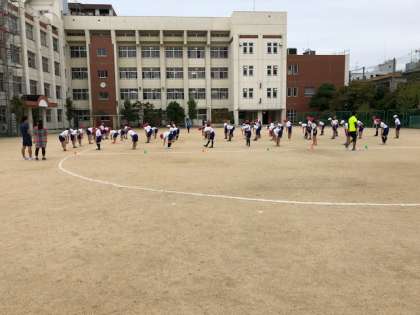 雨が上がってきたので、運動場でできそうです。頑張ります。