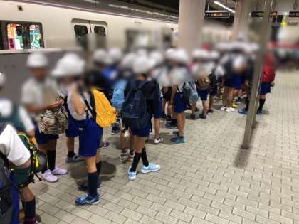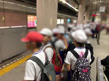 たくさんの学校が遠足に来ています。ホームが大混雑でした。