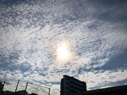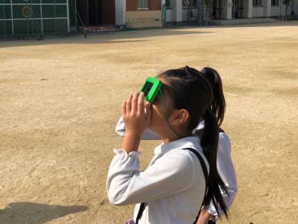 3年生理科で太陽の観察をしています。空には、秋の雲が〜