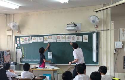 今日はオーエン先生と楽しく英語の勉強をする日です。担任の先生も一緒にゲームをして楽しんでいます。