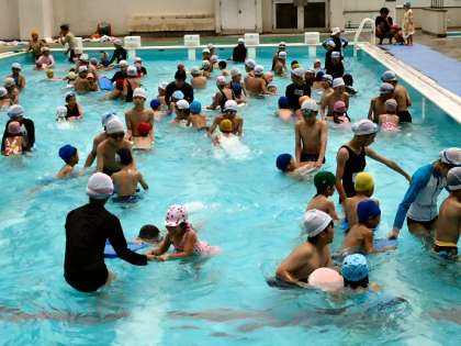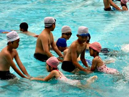西野田幼稚園とのプール交流